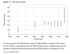 Facts often need context, but in the case of world-wide polar bear numbers it is straight forward: since bans on hunting were introduced in the 1970s numbers have increased from about 10,000 in the late 1960s to an official estimate of 26,000 in 2015. Surveys conducted since then, by those reluctant to report a further … Continue reading Unable to See the Polar Bears for the Snow