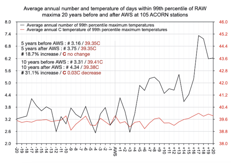 I’ve been assured over the last few years, including by the director of the Australian Bureau of Meteorology Andrew Johnson, that the change from mercury thermometer to platinum resistance probe is not the cause of, nor a contribution to, global warming as reported on the nightly television news. If it was, this would be evident … Continue reading Hyping Maximum Daily Temperatures (Part 7)