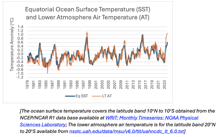 Australia experienced severe drought during the 1990s, and for much of that decade Australia’s National Climate Centre was headed by meteorologist Bill Kininmonth. He provided advice to government and also to the IPCC. Bill subsequently published an important book entitled ‘Climate Change: A Natural Hazard’. In it he explains that the model of the climate … Continue reading Oceans Warms Atmosphere, with Meteorologist Bill Kininmonth